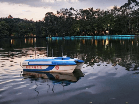 该无人艇集智能导航、自主避障、多任务模块化设计于一身,可广泛应用于水域巡逻、环境监测以及应急救援等领域。其搭载的高精度传感器与AI算法,实现了复杂场景下的高效作业,凸显了我校在海洋装备领域的创新实力。峰会期间,无人艇在西湖公园水域的动态演示中,自主完成预设航线巡航、自主避障和实时数据传输等任务。