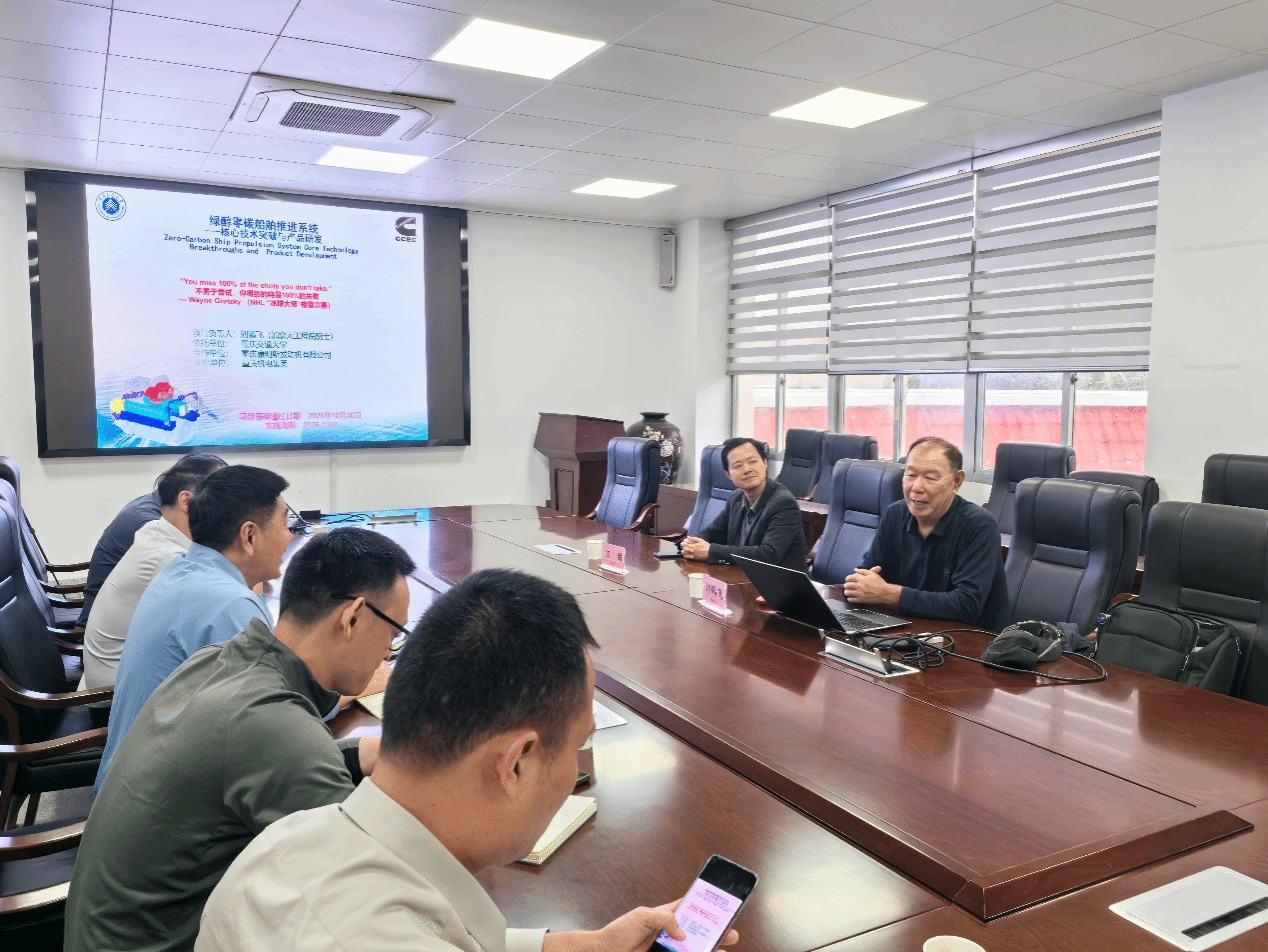 在交流中,刘院士围绕“绿醇零碳船舶推进系统”的核心技术突破与产业发展前景作了专题分享。他详细介绍了以甲醇为替代燃料的零碳船舶动力系统的研发路径,包括AI使能的船-桨耦合优化、数字孪生联合仿真平台、甲醇发动机高效清洁燃烧等关键技术的创新与突破。刘院士指出,该项目不仅响应我国“双碳”战略与国际海事组织减排目标,更将推动中国乃至全球内河、沿海与远洋船舶的零碳转型,具有广阔的市场前景与社会效益。