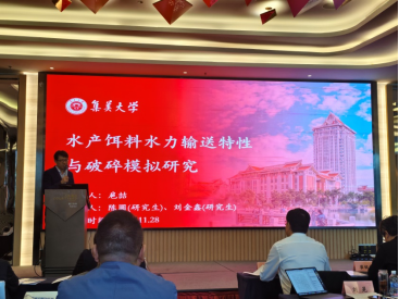 会上,学院副院长扈喆教授分享我校科研团队在水产饵料水力输送领域研究进展,并向与会学者介绍我校在渔业设施装备研发领域最新科研成果,进一步增进我校在行业领域影响力。