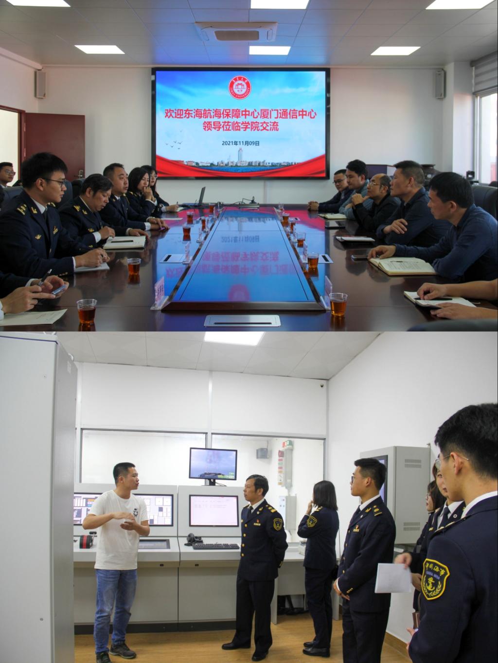11月9日下午,东海航海保障中心厦门通信中心党支部书记、副主任王广杉校友率中心相关部门负责人到轮机工程学院洽谈合作事宜。轮机工程学院党政领导郁军态、戴乐阳、范金宇、赖龙荣、吴德烽,学院相关负责老师与王广杉一行进行了座谈交流。