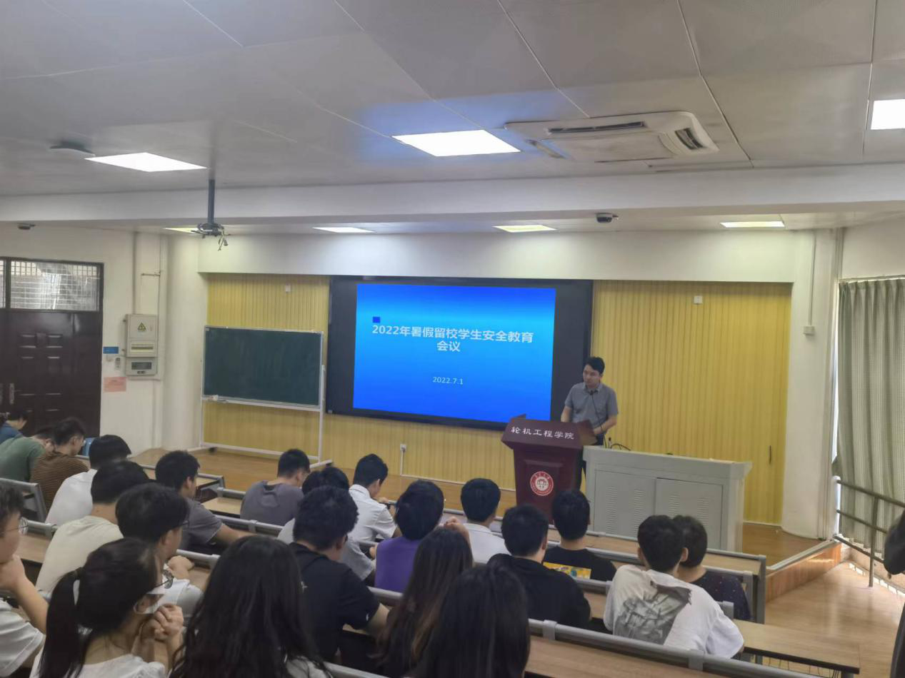 为增强学生们的安全意识,度过一个平安、健康、有意义的暑假生活,轮机工程学院于7月1日在育志楼227召开留校生暑期安全教育会议。院党委副书记赖龙荣、半军事化管理办公室主任汤华、院团委副书记王宇亮、辅导员和全体留校生参加了会议。