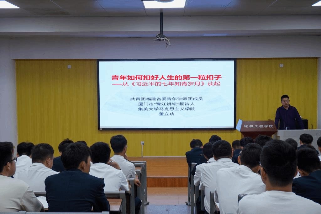 为进一步做好新时代党员发展工作,从源头上把严党员“入口关”,加固发展党员的“蓄水池”,2023年11月12日,轮机工程学院邀请共青团福建省委青年讲师团成员、集美大学马克思主义学院董立功老师于育志楼227为入党积极分子培训班作第四讲辅导报告,报告主题为青年如何扣好人生第一粒扣子——从《习近平的七年知青岁月》谈起。