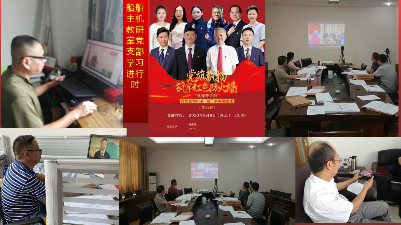 2020年9月9日星期三1000《高校党组织示范微党课本季收官之作•第12讲》如期开讲,此次由南京大学、中山大学、东北师范大学、华中师范大学4校党委书记分别介绍各校先进抗疫人员的经历和感悟。船舶主机教研室党支部党员同志利用有限的课余时间组织观看,并写下了深刻的体会。