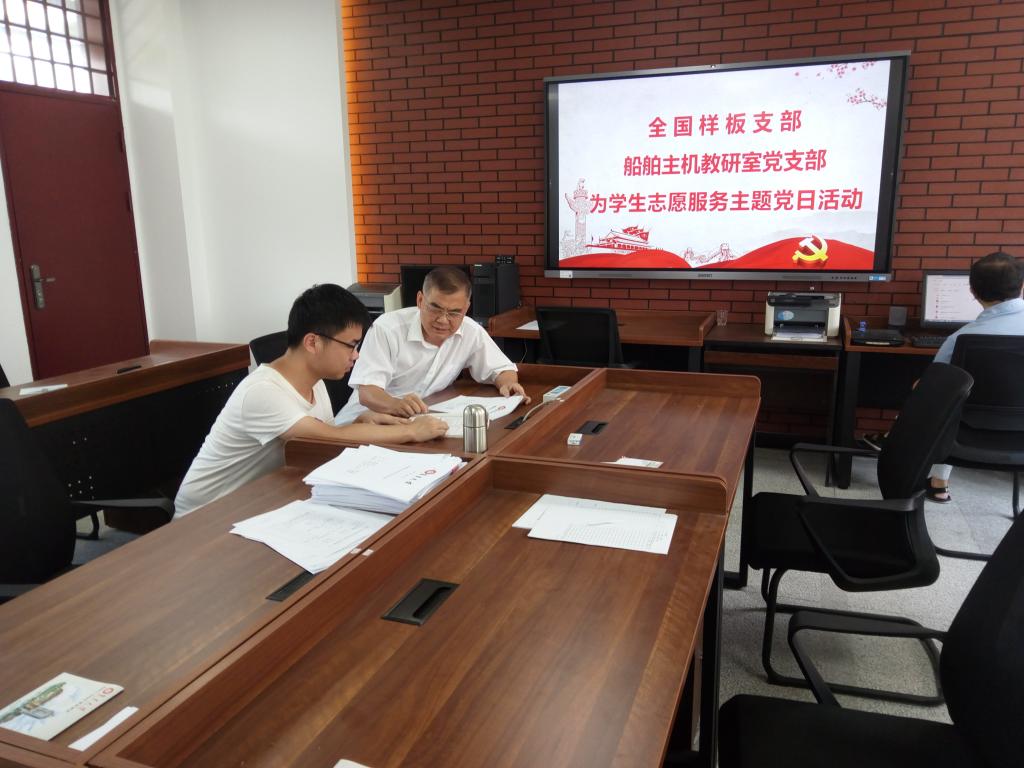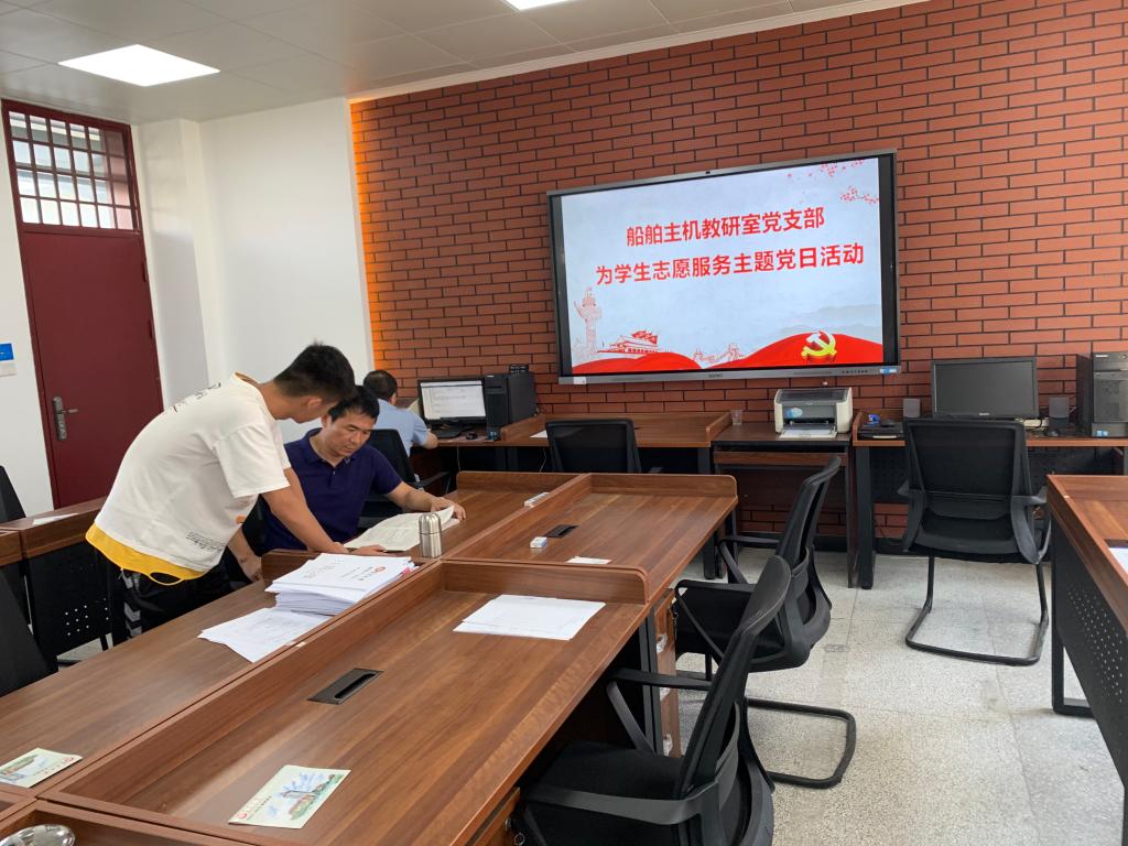 2021年6月15—16日,船舶主机教研室党支部开展为学生志愿服务主题党日活动。各党员教师主要在育志楼0320教研室给轮机学子进行专业课学习的答疑工作,张中刚同志带轮机1913、1914学生上校船“育德”轮认识实习,同日在机舱集控室给学生介绍当前航运业、专业课程学习及未来工作等方面的内容,并进行答疑解惑。