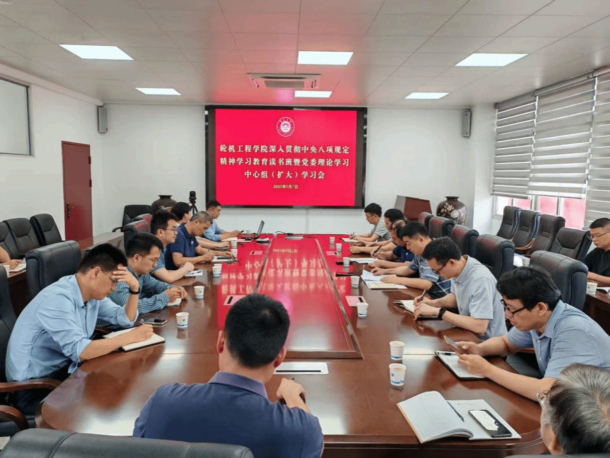5月7日下午,轮机工程学院党委召开深入贯彻中央八项规定精神学习教育读书班暨党委理论学习中心组(扩大)学习会。院党委书记陆宝忠主持会议,院领导班子成员、科级干部、党支部书记参加会议。